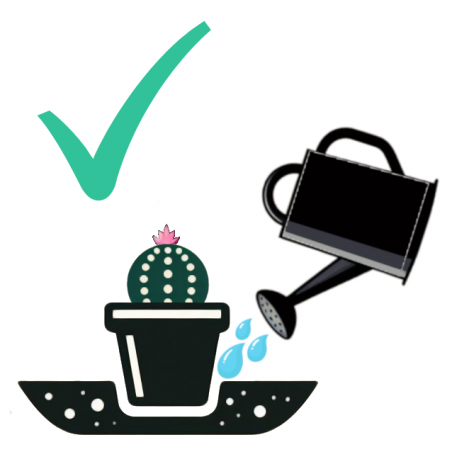 Anwendungshinweis, insbesondere bei erster Verwendung: Nach dem Eintopfen des Ariocarpus in die trockene Erde und einer Wartezeit von etwa 20 Tagen gießen Sie Ihren fertigen Topf "von unten" in einen Untersetzer an. Dadurch wird der Lösslehm fest gebunden. Eine kleine Menge ausgewaschenen Lehms im Untersetzer ist normal und zu vernachlässigen. Eine leichte Düngelösung im Wasser aktiviert die Pflanzenkohle. Ihre Pflanze wird nun optimal, gleichmäßig und langfristig mit Nährstoffen versorgt.