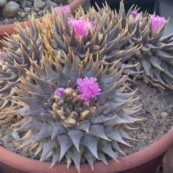 Hinweis: Die Erde verdichtet sich mit der Zeit – dies ist beabsichtigt, da es den Bedürfnissen des Ariocarpus und den natürlichen Gegebenheiten an seinen Standorten entspricht.
