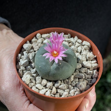 Lophophora Fricii El Amparo, Durchmesser ab 3,5cm. Blühfähig. Aus Samenaufzucht. Versand eingetopft.