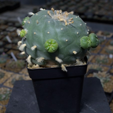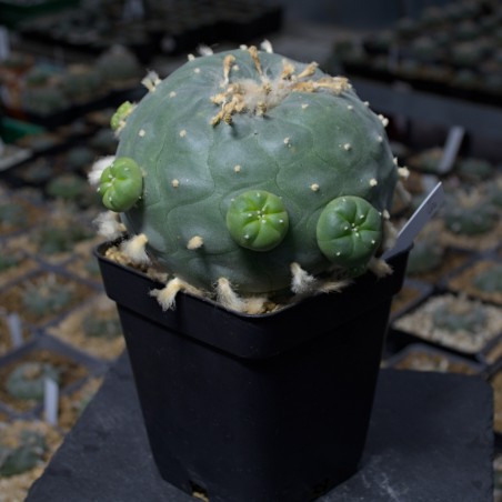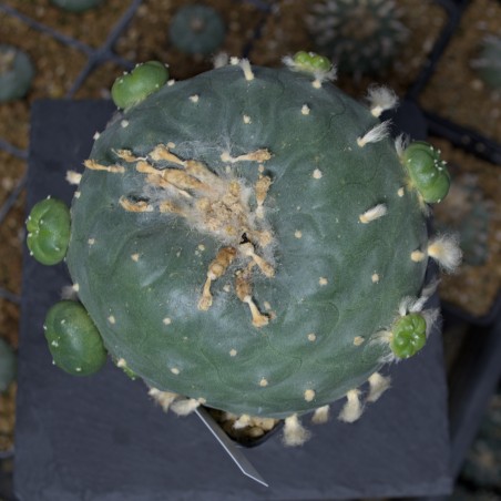 Ein beeindruckendes XL-Einzelstück der Lophophora diffusa vom Standort Querétaro. Dieses Prachtexemplar mit einem 11,5 cm großen Hauptkopf und sieben Kindeln wartet auf dich.