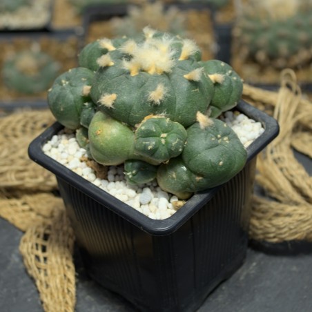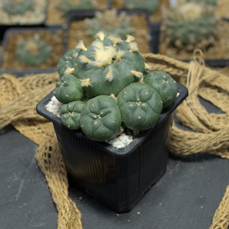 Diese Lophophora jourdaniana ist eine Kulturpflanze, die Dir die unverfälschte Genetik ihres natürlichen Standorts bietet, ohne der Natur entnommen worden zu sein. Dieser Cluster besticht durch seine typische, stark sprossende Wuchsform und seine wunderschönen Blüten. Er ist ein zuverlässiger Blüher und produziert reichlich keimfähige Samen.
