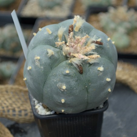 Entdecke dieses beeindruckende Einzelstück eines Lophophora williamsii, dessen Genetik ursprünglich aus der Region San Luis Potosí in Mexiko stammt.