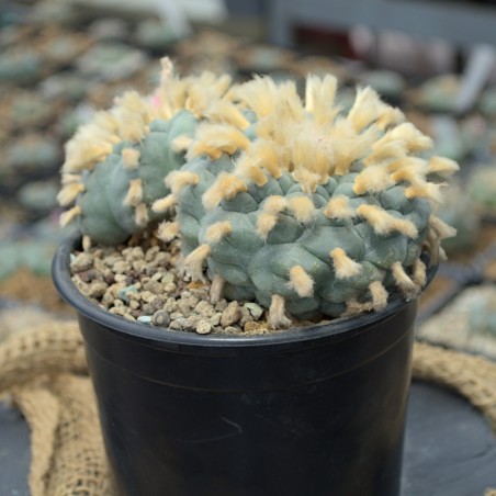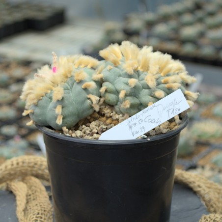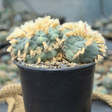 Einmaliger, doppelköpfiger Lophophora williamsii vom seltenen Standort Saltillo-Monclova (KM39, Mex 57) in Coahuila. Du erhältst exakt die abgebildete Pflanze. Ein echtes Sammlerstück mit beeindruckenden Maßen.