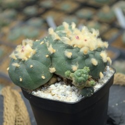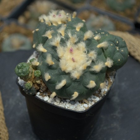 Diese Lophophora jourdaniana ist eine Kulturpflanze, die Dir die unverfälschte Genetik ihres natürlichen Standorts bietet, ohne der Natur entnommen worden zu sein. Dieser Cluster besticht durch seine typische, stark sprossende Wuchsform und seine wunderschönen Blüten. Er ist ein zuverlässiger Blüher und produziert reichlich keimfähige Samen.