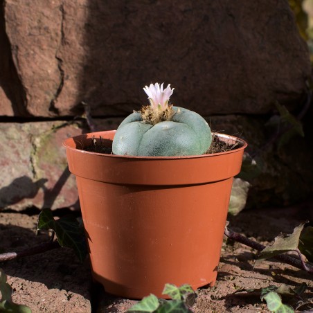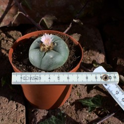 Kerngesunder, blühfähiger Lophophora williamsii (Peyote) aus Samen-Aufzucht. Starke Rübenwurzel.